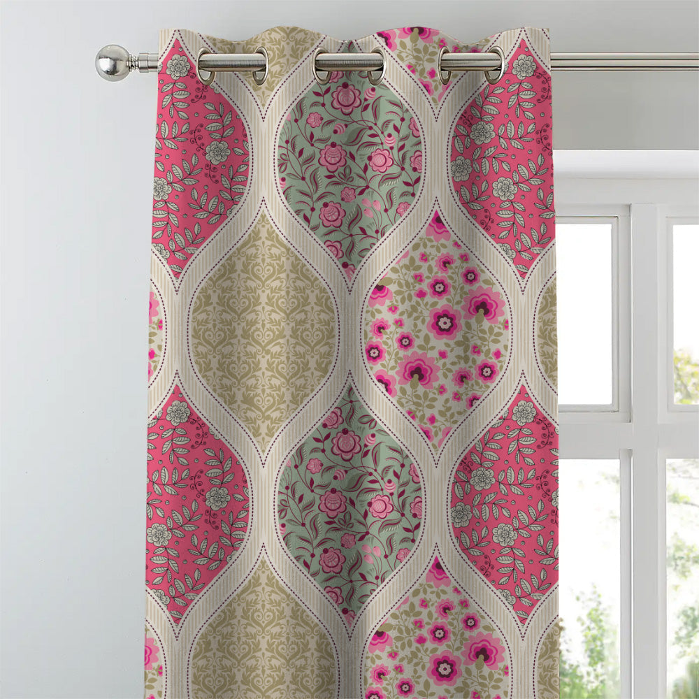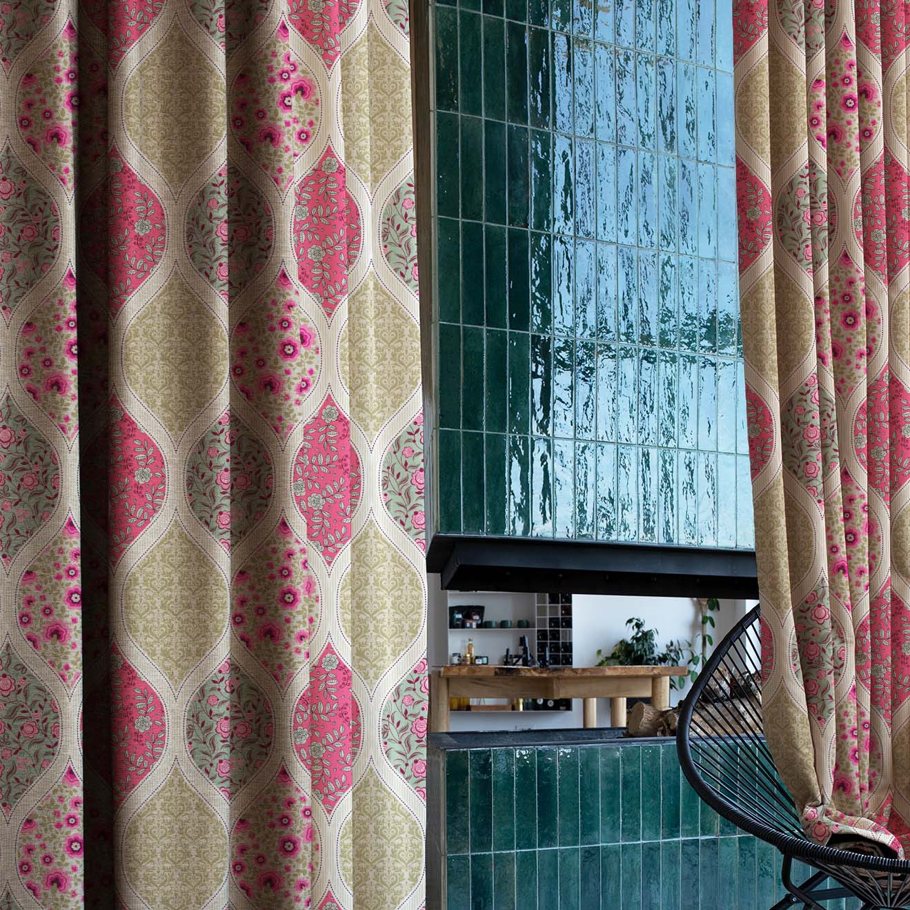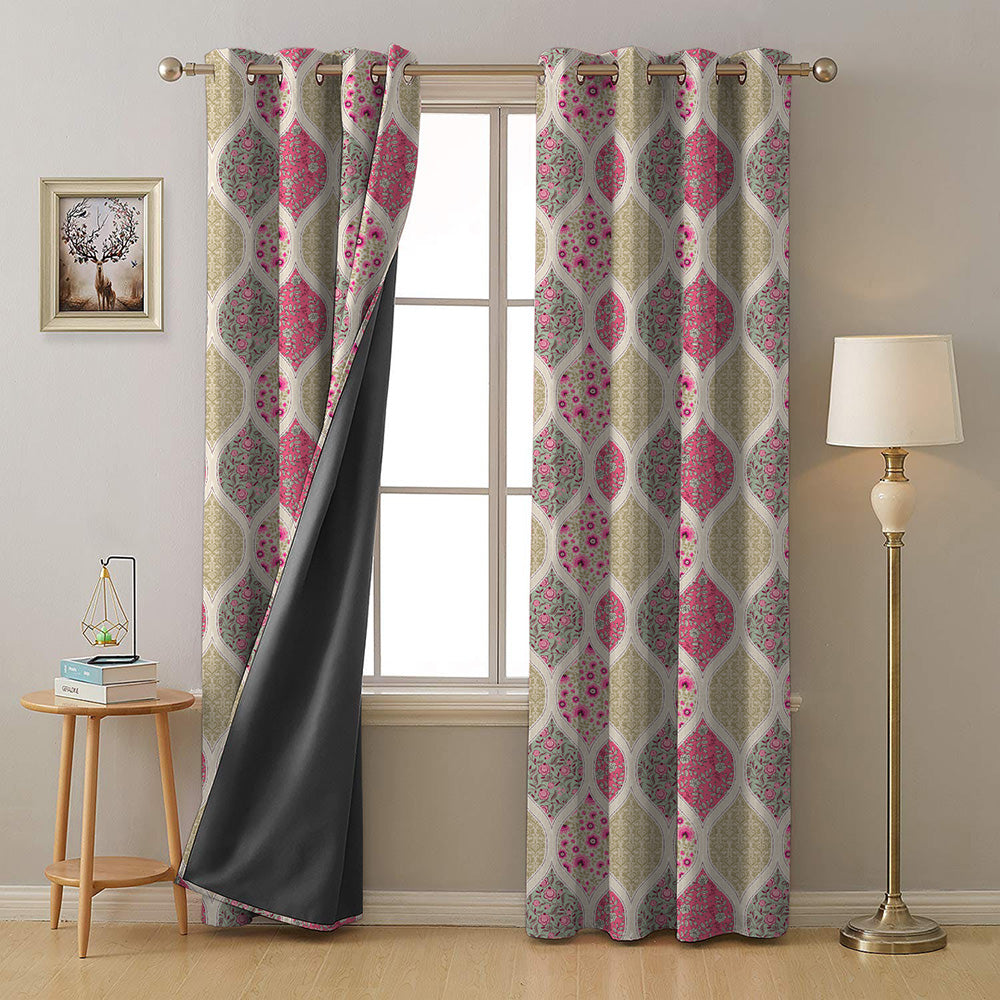 BloomBlock Floral Hot Pink Heavy Satin Room Darkening Curtains Set Of 2 - (DS236A)