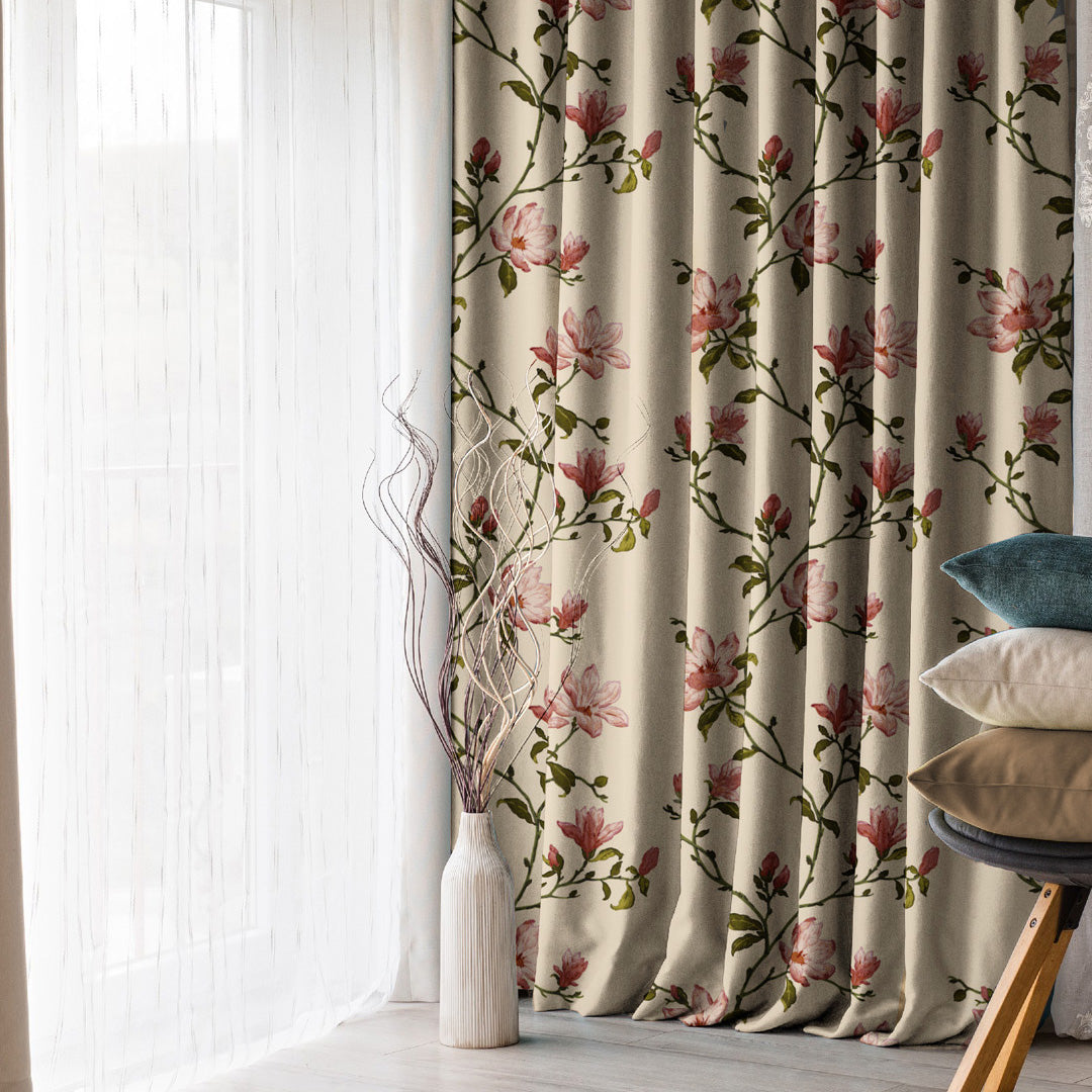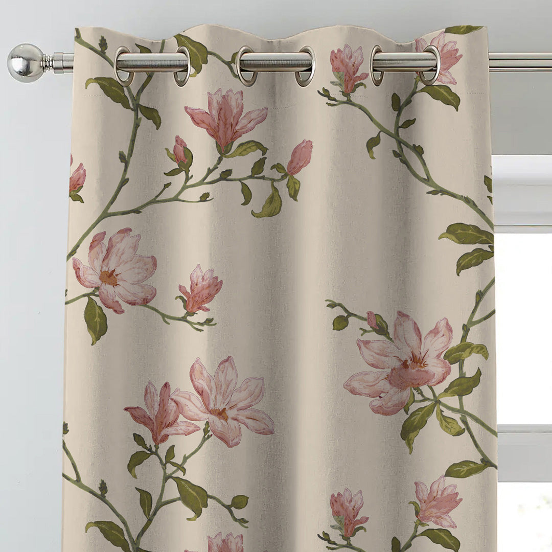 Blooming Vines Floral Soft Pink Heavy Satin Blackout Curtains Set Of 2 - (DS427B)