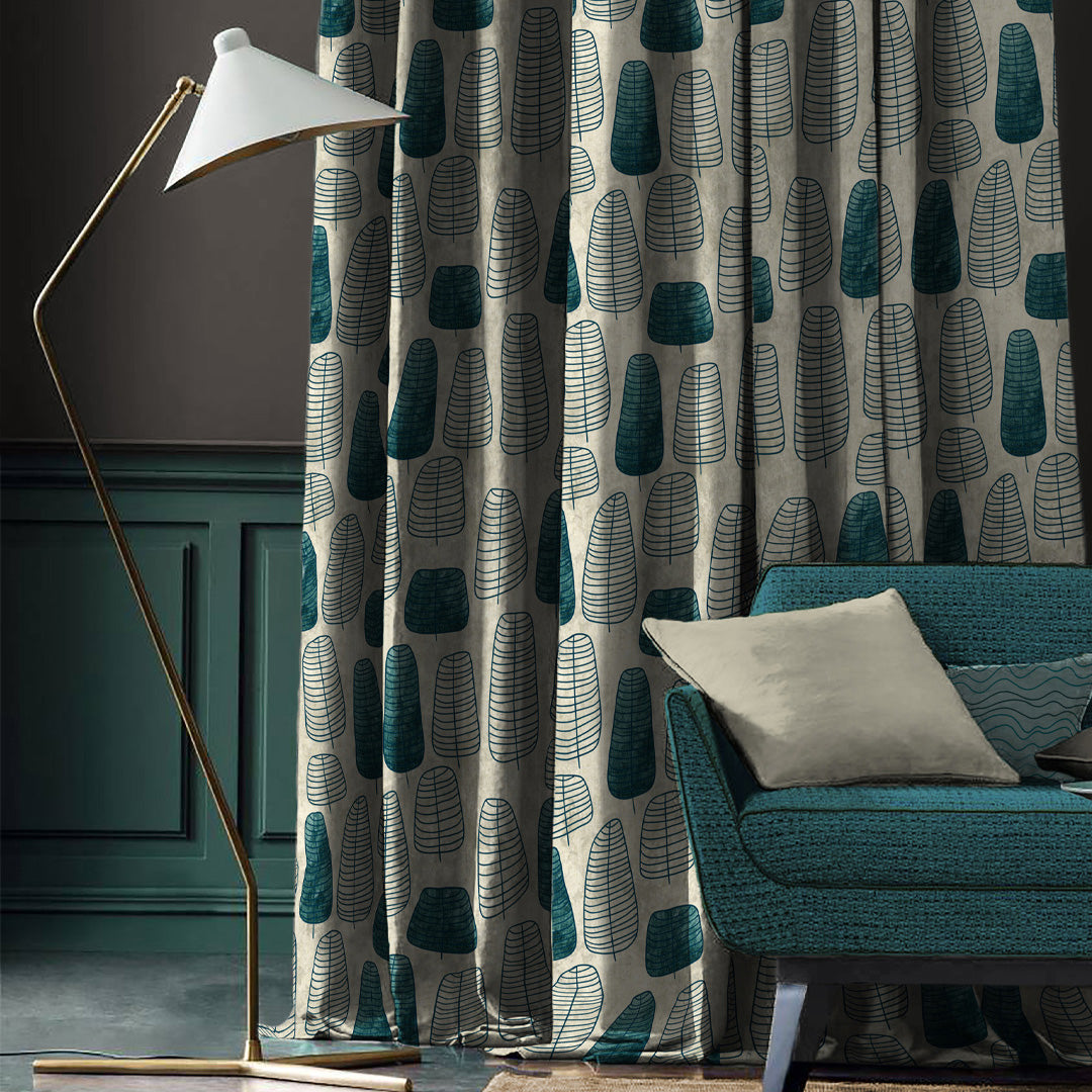 Free Spirit Floral Turquoise Heavy Satin Blackout Curtains Set Of 2 - (DS468A)