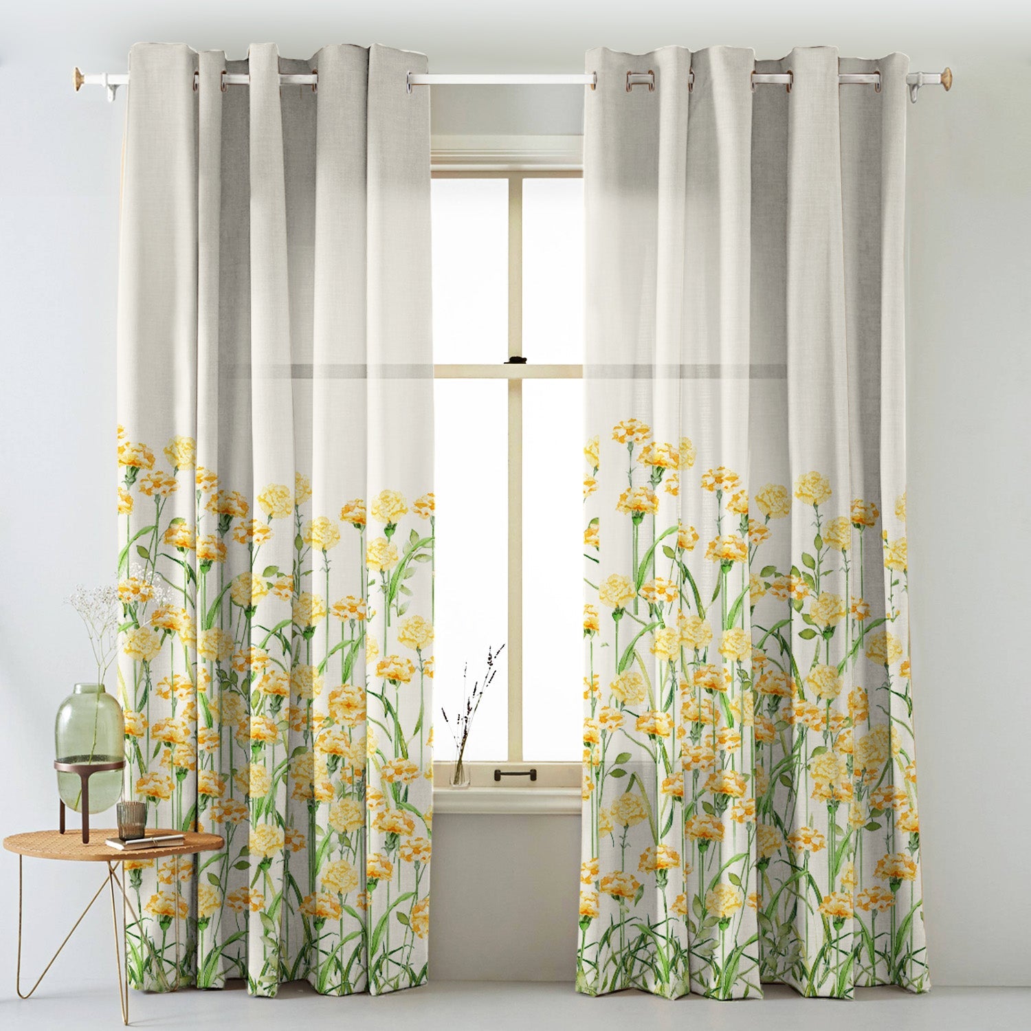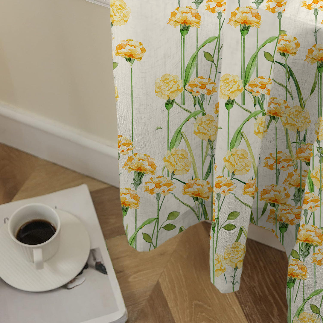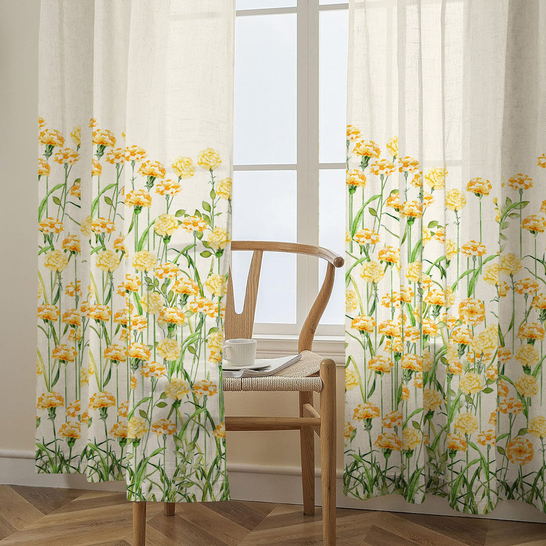 Marigold Bliss Floral Sunshine Yellow Matte Finish Room Darkening Curtains Set Of 2 - (DS551)