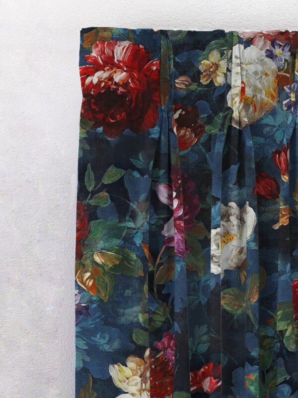 Dark Romance Floral Steel Blue Heavy Satin Blackout Curtains Set Of 2 – (DS473A)