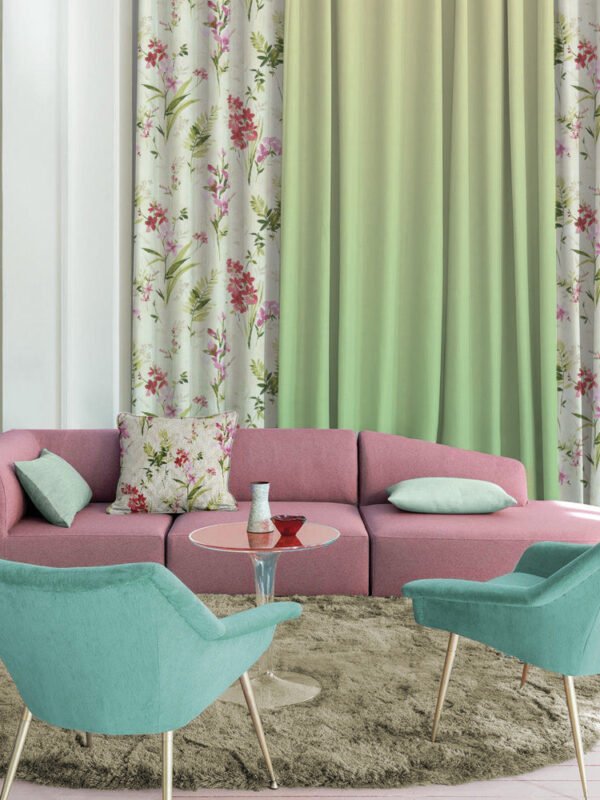 Floral & Ombre Print Combination Room Darkening Curtains Set Of 4 Door Curtain – (260AOFC16)