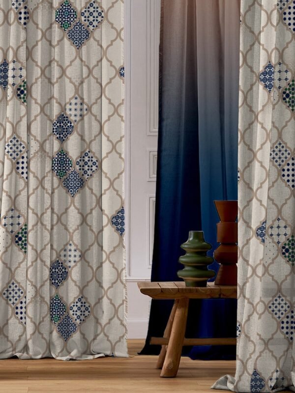 Elegant Ethnic & Ombre Print Combination Room Darkening Curtains – Set Of 4 Door Curtain (452AMR2) – Blue & Cream