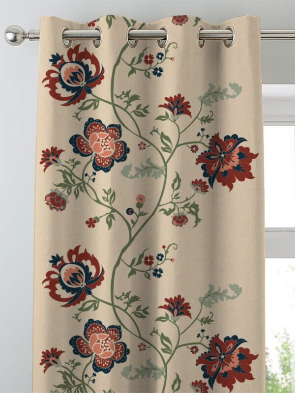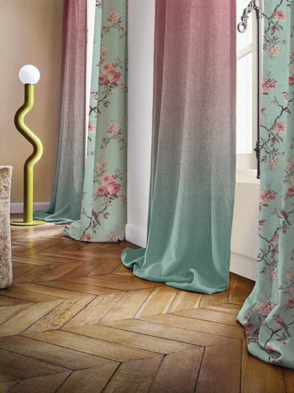 Floral Fresco Floral & Ombre Print Combination Room Darkening Curtains Set Of 4 Door Curtain – (207BOMBRE25)