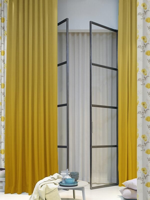 Elegant Floral & Ombre Print Combination Room Darkening Curtains – Set Of 4 Door Curtain (133ALINES3) – Yellow & Cream