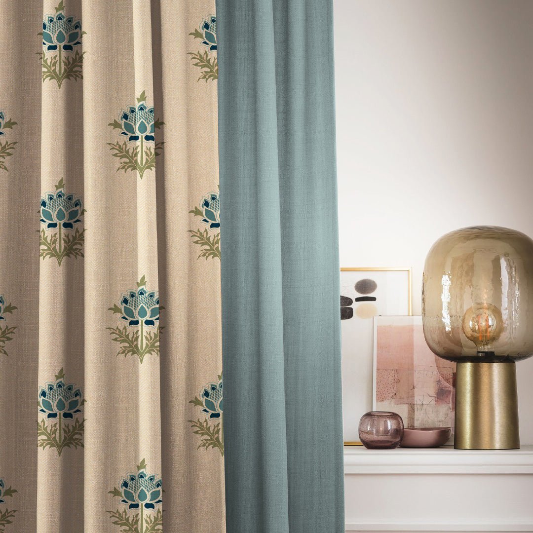ButtaBliss Indie Teal Heavy Satin Blackout Curtains Set Of 2 – (DS521D)