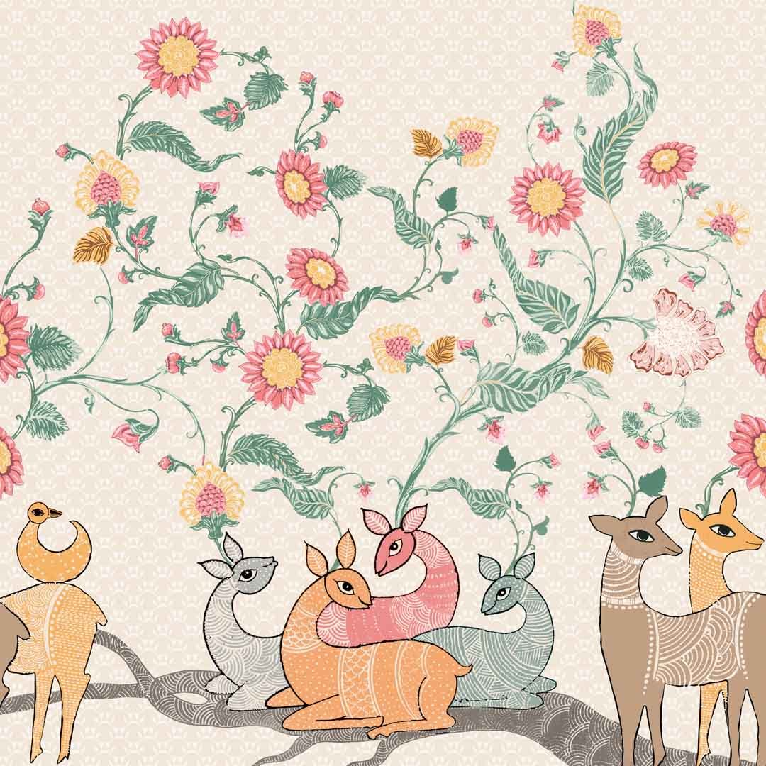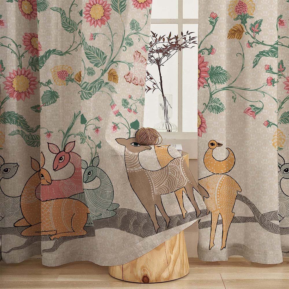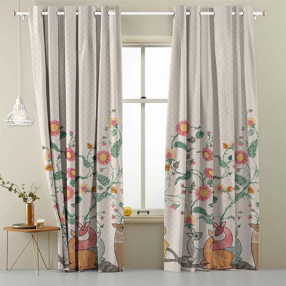 Forest Folklore Floral Matte Blanched Almond Room Darkening Curtain Set of 2 -(DS566A)