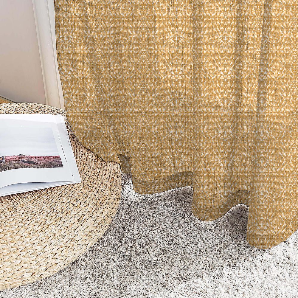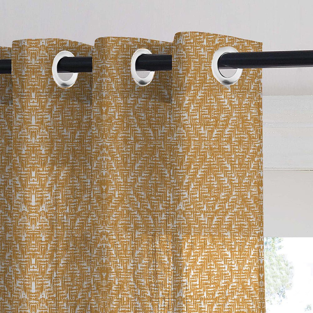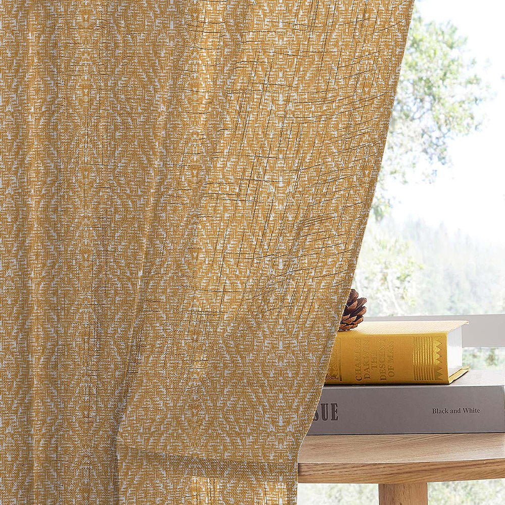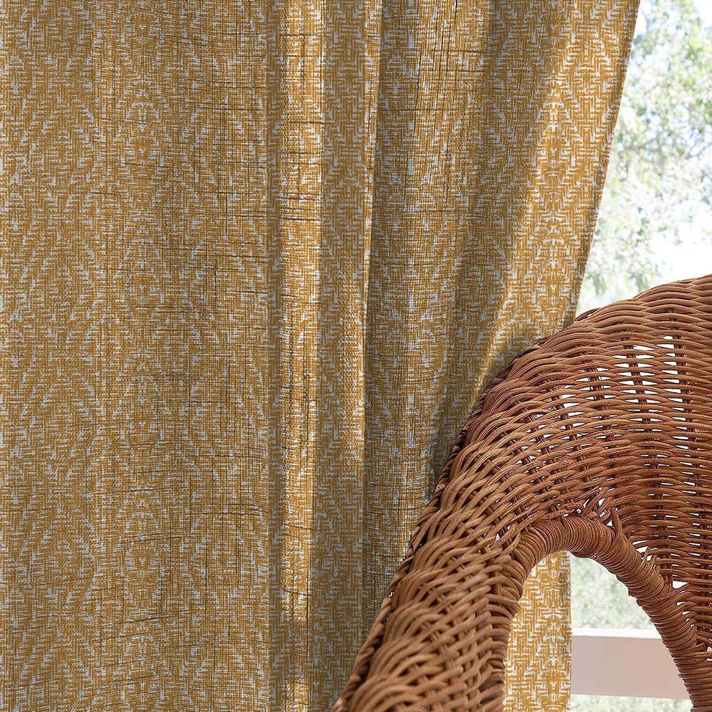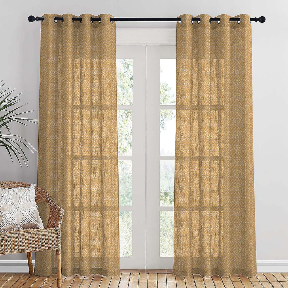 MacraMagic Geometric Harvest Gold Linen Sheer Curtain Set of 2 -(DS565A)