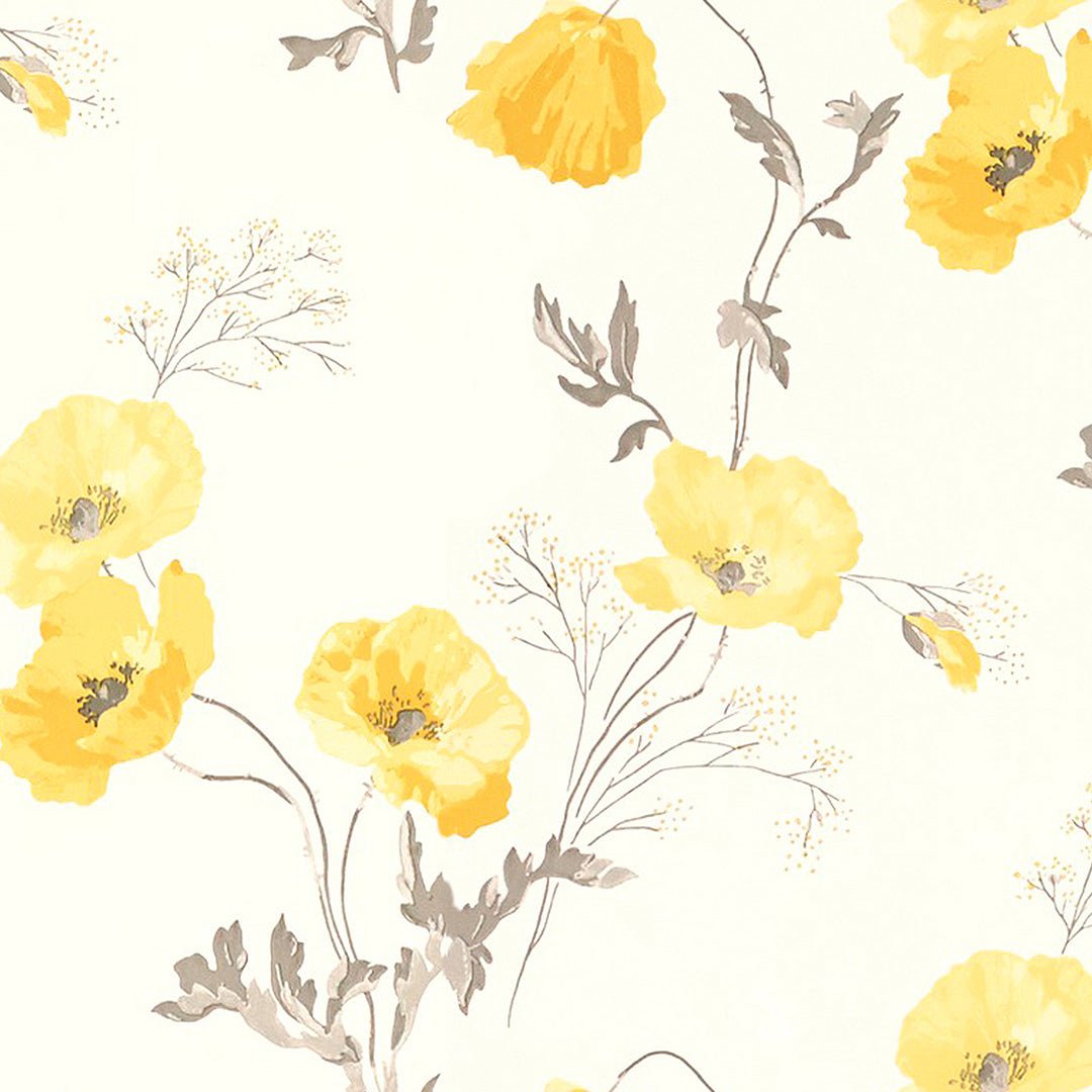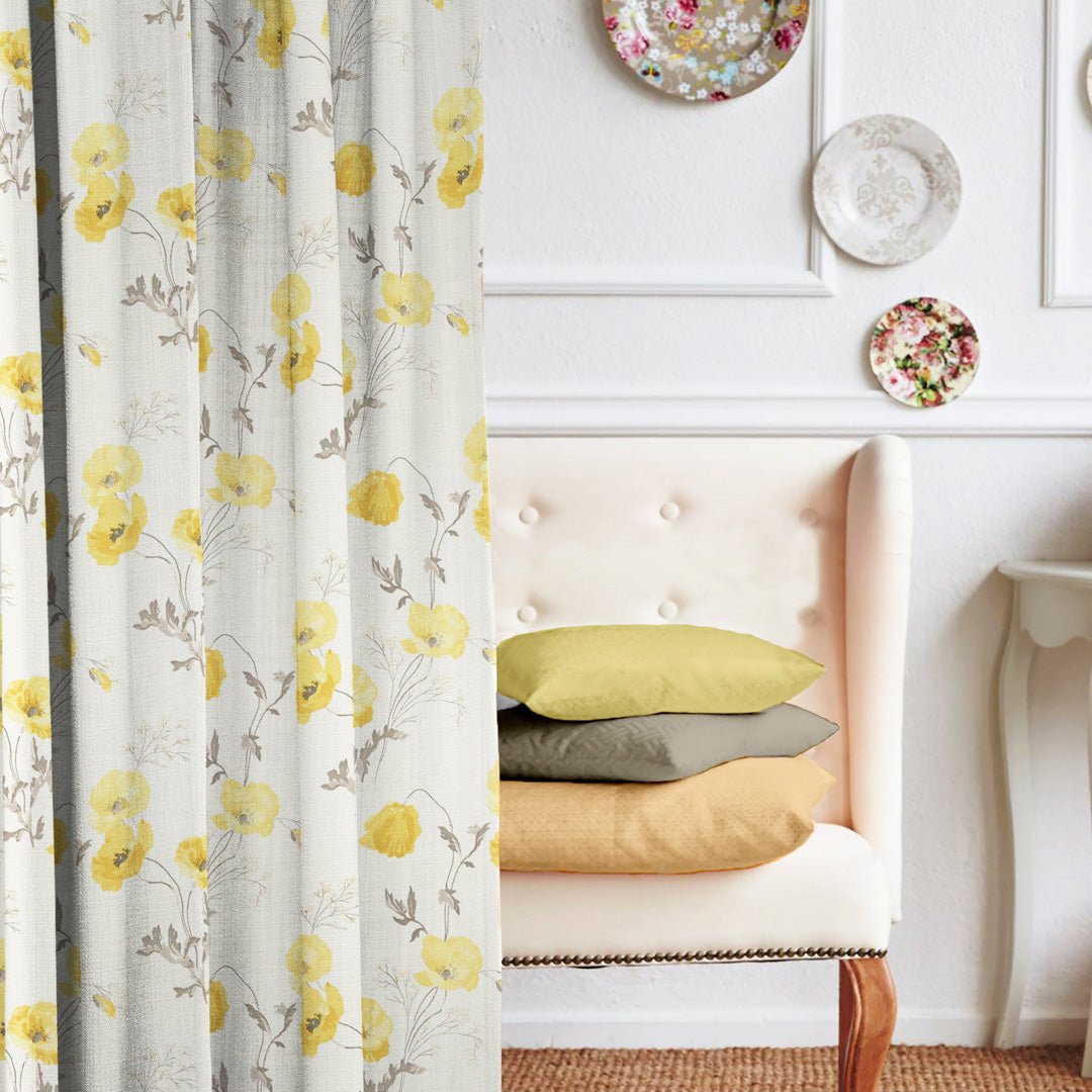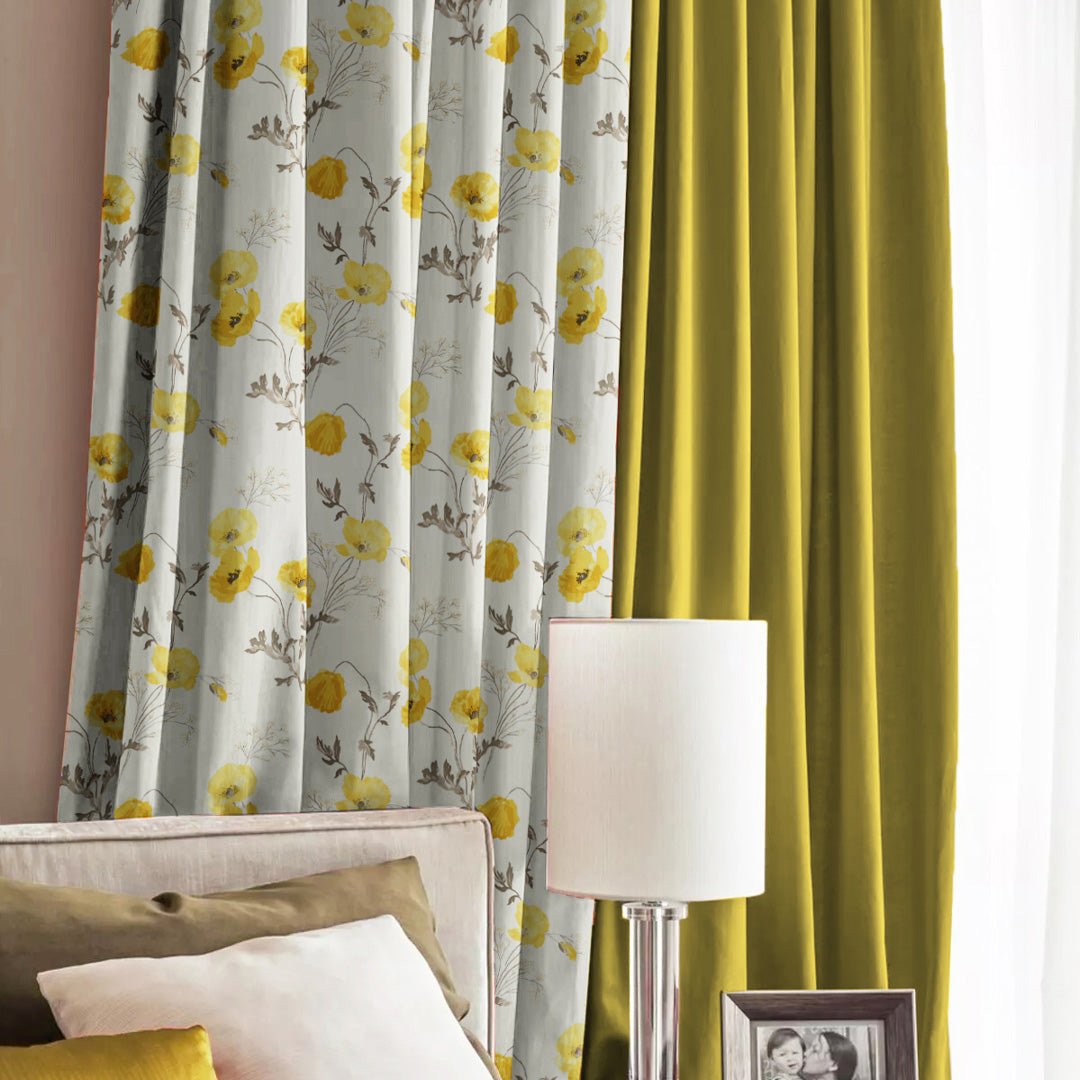 Poppy Meadow Floral Yellow Heavy Satin Blackout Curtains Set Of 2 – (DS133A)