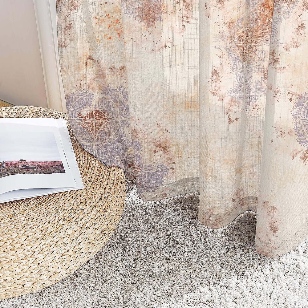 Infuse your space with a touch of elegance and sophistication with our Rustic Charm Sheer Curtains. Featuring a soft Purple base adorned with subtle Red accents, known as London Hue, these curtains exude a sense of tranquility and refinement. Crafted from airy Linen, they gently filter in natural light, casting a warm and inviting glow throughout your room. As part of our exclusive Metamorphosis collection, these curtains embody a captivating Geometric style that seamlessly merges modernity with rustic charm. With a light filtering capacity of 30-40%, they strike the perfect balance between luminosity and privacy, creating a serene ambiance that invites relaxation. Choose from two header styles to customize your look: Eyelets for Rods, ensuring easy installation, or American Pleats for Rods and Tracks, offering versatility and sophistication. Ideal for the living room or any space in need of a subtle yet stylish transformation, these curtains add an ethereal touch to your décor. For a harmonious ambiance, consider pairing them with minimalist furniture pieces. The juxtaposition of delicate curtains against clean lines creates a light and airy atmosphere that’s both inviting and serene. Elevate your home with our Rustic Charm Sheer Curtains and experience the timeless beauty and tranquillity they bring to your living space.