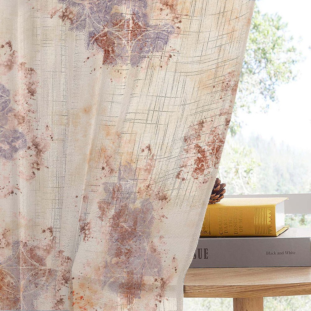 Pastel Posy Floral Linen Sheer Curtain Set Of 2 DS553