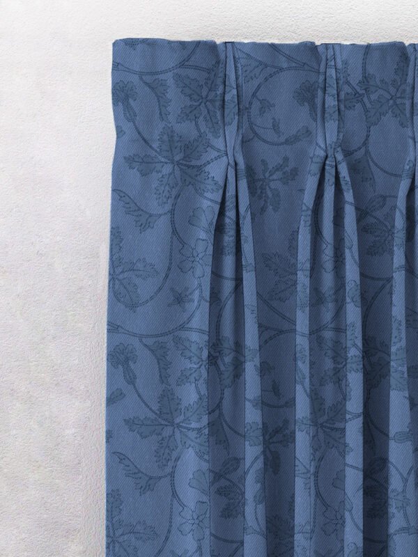 Nouveau Petal Floral Oxford Blue Heavy Satin Room Darkening Curtains Set Of 2 – (DS496C)