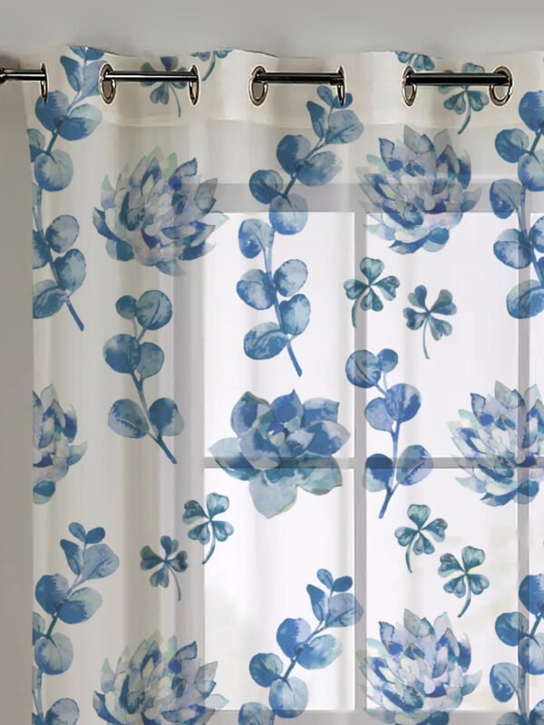 Elegant Floral Print Sheer Semi Transparent Curtain – Set of 2 -DS19C1