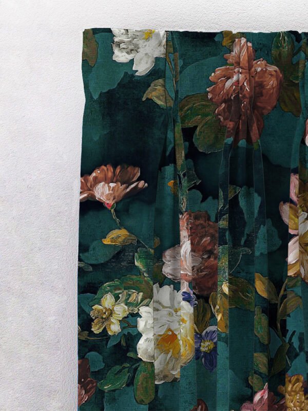 Dark Romance Floral Turquoise Heavy Satin Blackout curtains Set Of 2 – (DS473B)